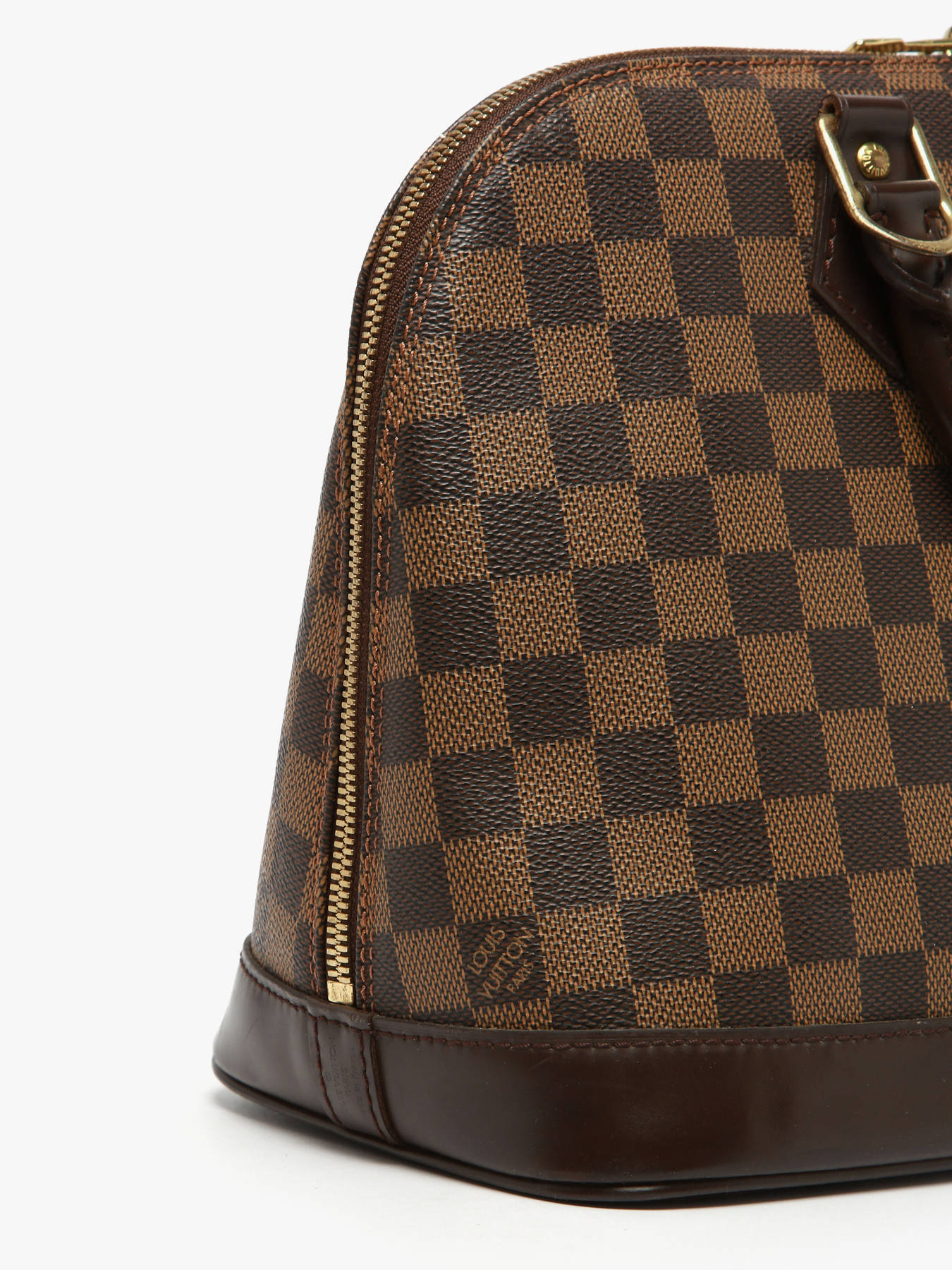 The Alma Damier handheld bag from LOUIS VUITTON SECOND LIFE is crafted from durable coated canvas with leather trims, combining elegance and sturdiness. Its zip closure secures your belongings while the 8 cm handle height allows for a comfortable and stylish hand carry. The interior features one main compartment and two simple pockets, perfect for organizing your essentials. Rated grade A/B, this bag shows signs of frequent use, with marks, traces, or wear that add a beautiful patina, reflecting its history and authenticity. This timeless model is ideal for those seeking a chic and practical accessory, showcasing LOUIS VUITTON’s iconic craftsmanship with a unique touch of character.