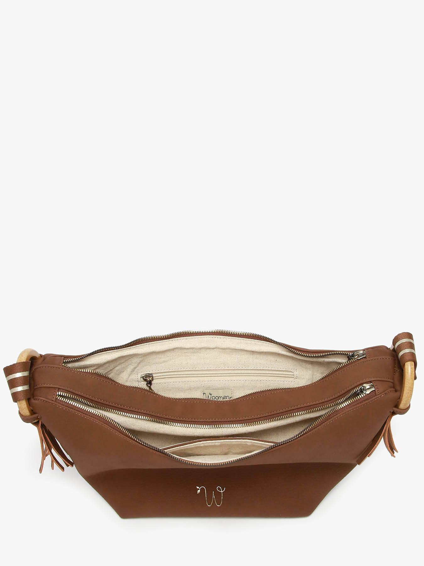 Le sac bandoulière WOOMEN de la ligne CAMOMILLE se distingue par ses franges élégantes sur les côtés au niveau des anneaux et sa bandoulière réglable ornée d’un liseré irisé. Confectionné en polyuréthane composé à 58% de matières recyclées avec une doublure en coton et lin, il offre une double ouverture pratique, deux compartiments séparés, une poche simple et une poche zippée pour un rangement optimisé. Un accessoire audacieux et responsable à porter à l’épaule ou en bandoulière.