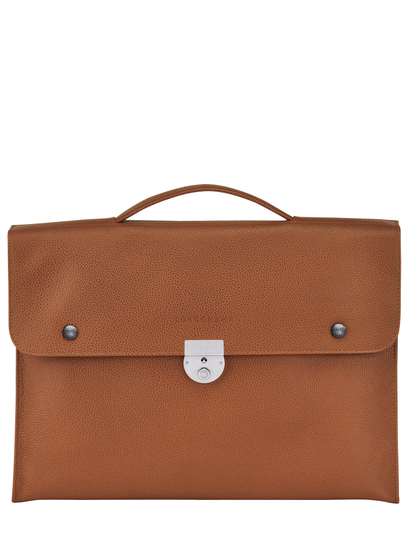La collection Le Foulonné de chez Longchamp revisite le cartable avec cette serviette au design subtilement rétro. On aime son fermoir façon cadenas et son rabat qui se ferme sur un intérieur fonctionnel : 1 compartiment principal muni d'1 porte-clés et d'1 poche divisée en 3 sections. Il peut contenir des documents A4.
