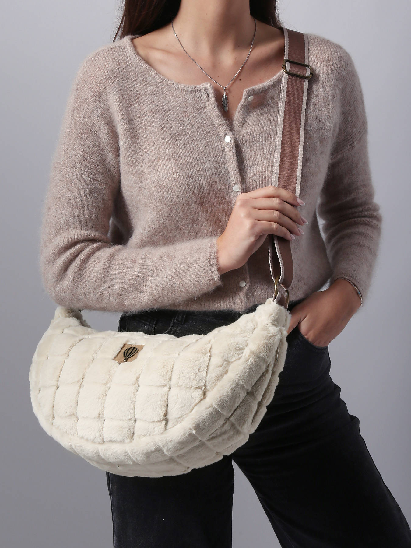 The Le Voyage en Panier Quadri Doudou crossbody bag strikes the perfect balance between softness, practicality, and contemporary style. Made from plush-feel polyester, it features a modern, functional silhouette designed for comfortable crossbody wear. The zip closure keeps belongings secure, while a back zip pocket provides quick access to essentials. Inside, fully lined in textile, it offers one main compartment complemented by two open pockets and one zip pocket for optimal organization. Lightweight, versatile, and refined, the Quadri Doudou blends contemporary aesthetics with practical functionality, perfectly embodying Le Voyage en Panier’s spirit: a chic, easy-to-wear bag for everyday life.